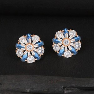 RoseGold Plated Women Blue CZ Studded Flower Studs