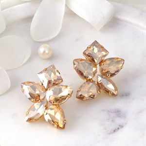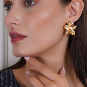 Gold-Toned Rhinestone Studded Floral Studs Earrings
