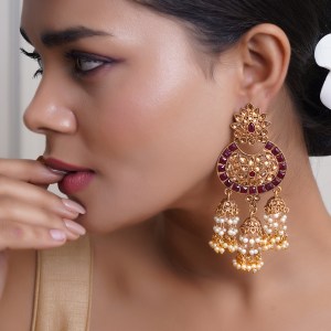 This gorgeous temple jewelry earrings set pairs best with traditional Indian outfits. It looks stunning for both day & nighttime wear. It is plated with high-quality polish & studded with excellent precision for long-lasting wear. Ideal gift for Valentine’s, Thanksgiving, Mother’s Day, Friendships Day, Christmas, Birthday, & Anniversary.