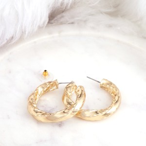 Gold Plated Texture Statement Fashionable Half Hoop Earrings
