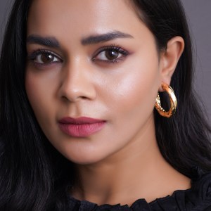 Gold Plated Texture Statement Fashionable Half Hoop Earrings are elegant accessories that blend classic charm with a touch of sparkle. Crafted with a gold-toned finish. Perfect for elevating both everyday and special occasion outfits, these Hoops exude sophistication and timeless style.