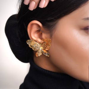 These Women Gold Plated Stone Studded Layered Butterfly Design Earrings are a perfect blend of delicate charm and sparkling elegance. Featuring intricate butterfly motifs layered gracefully and adorned with shimmering stones, these earrings add a whimsical yet sophisticated touch to any outfit. Finished with rich gold plating, they are durable, tarnish-resistant, and ideal for both everyday wear and special occasions. Elevate your style with these beautifully crafted statement earrings
