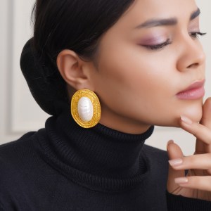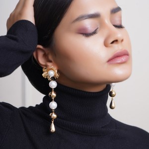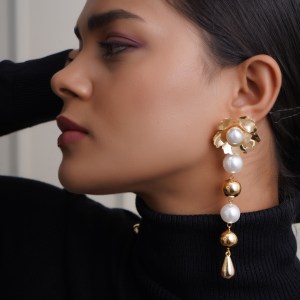 The Women Gold Plated Floral Design Pearl Beaded Earrings combine intricate floral craftsmanship with elegant pearl beading, all finished in rich gold plating. These earrings exude timeless femininity and sophistication, perfect for enhancing both casual and formal ensembles. Crafted to be durable and tarnish-resistant, they are a graceful addition to any jewelry collection