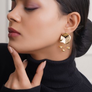 The Women Gold Plated Hanging Nodes Design Earrings feature a contemporary style with delicate hanging nodes that create a graceful, eye-catching movement. Crafted with rich gold plating, these earrings blend modern elegance with versatile charm, making them perfect for both casual wear and special occasions. Durable and tarnish-resistant, they add a subtle yet sophisticated touch to your jewelry collection