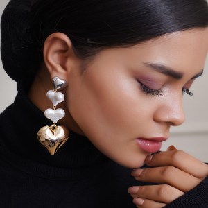 Women Gold Plated Hanging Hearts Layered Dangle Earrings