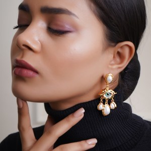 The Women Gold Plated Evil Eye with Hanging Pearls Earrings beautifully blend meaningful symbolism with elegant design. Featuring the protective evil eye motif accented with delicate hanging pearls, these earrings are finished in radiant gold plating for a luxurious look. Perfect for everyday wear or special occasions, they are durable, tarnish-resistant, and add a unique, stylish touch to your jewelry collection