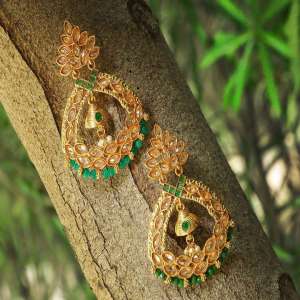 Women Gold Plated Traditional Stone – Studded Earrings. Our Gold Plating is long lasting and non-allergic to skin
