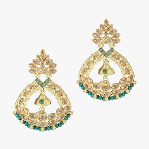 Women Gold Plated Kundan Studded and Drop Earrings. Our Gold Plating is long lasting and non-allergic to skin. It Give you a beautiful elegant look with our outfit.