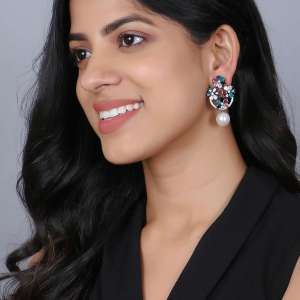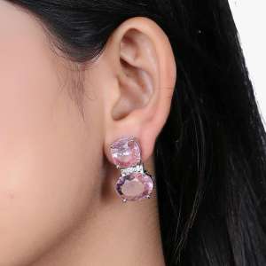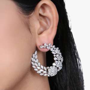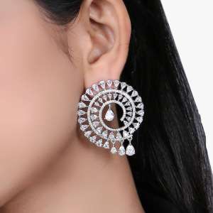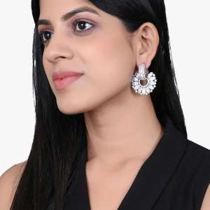 Women Rhodium Plated Stone Studded Earrings. Our Rhodium Plating is non-allergic to skin