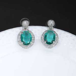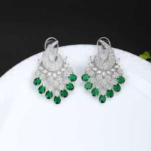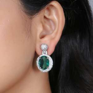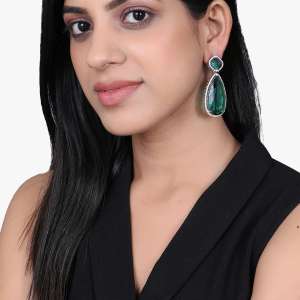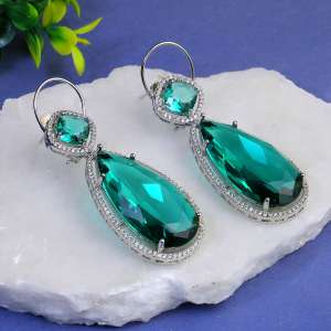Rhodium-Plated Handcrafted Emerald Stone Green Earrings.Our Rhodium plating is long lasting and non allergic to skin,and has artificial stones,Secured with a fraction Back closure.