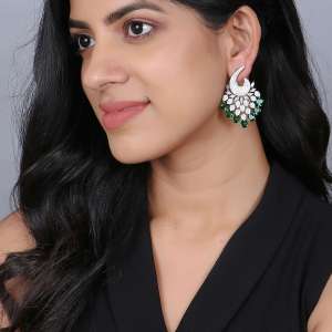 Women Silver Plated Peacock Design Stone Studded Earrings. Our Silver-Plated is long lasting and non-allergic to skin