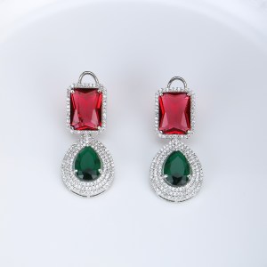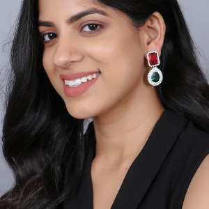 Rhodium-Plated Handcrafted Emerald and Ruby Stone Green Earrings.Our Rhodium plating is long lasting and non allergic to skin,and has artificial stones,Secured with a fraction Back closure.