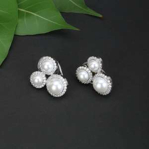 Silver-Plated Handcrafted White Pearl Studded Earrings.Our Rhodium plating is long lasting and non allergic to skin,and has artificial stones,Secured with a fraction Back closure.