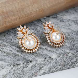 Women Rose Gold Plated White Pearl Studded amd Stone Studded Tessels Drop Earrings. Our Rose Gold Plating is long lasting and non-allergic to skin. It Give you a beautiful elegant look with our outfit.
