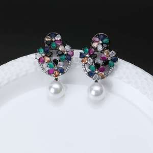 Women Multicolor Silver-Plated Vitorian Earrings, ,and has artificial stones,Secured with a fraction Back closure.