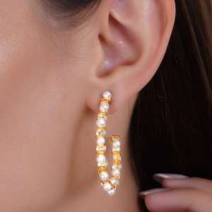 Women Gold-Plated Pearl Half Hoop Earrings. Our Gold Plating is long lasting and non-allergic to skin. It Give you a beautiful elegant look with our outfit.