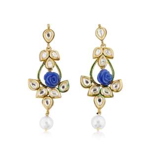 Women 24CT Gold Plated Handcrafted Blue Flower With Kundan Drop Earing ,Gold-plated,and has artificial stones,Secured with a Post back closure.