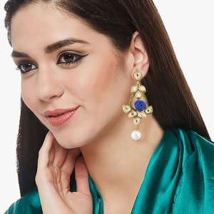 Gold Plated Kundan Blue Earring