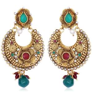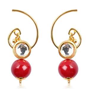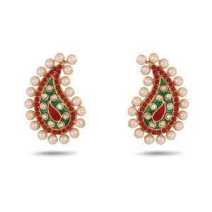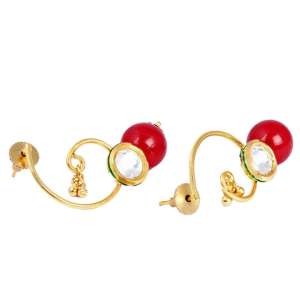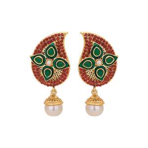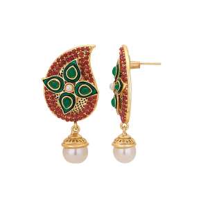 Women 24CT Gold-Plated Handcrafted Stone-Studded Multicolor Red and Green Pearl,Gold-Plated,and has artificial stones,Secured with a Post back closure.