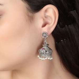 Oxidised Silver Pearl Jhumki