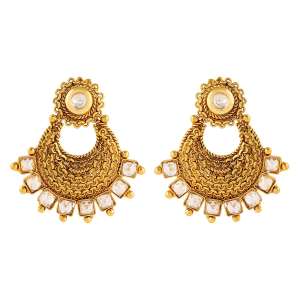 Women Silver-Plated Stone-Studded Designer Earring Gold-plated,and has artificial stones,Secured with a post and back closure.