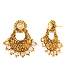Women 24CT Gold Plated Handcrafted Earing ,Gold-plated,and has artificial stones,Secured with a Post and Back closure.