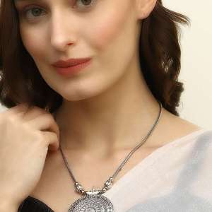 Oxidised Silver-Plated Stone Studded Pendant With Drawstring consist Stone Silver-plated and stranded with Drawstring closure.,.
