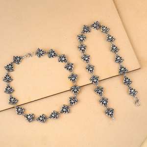 Silver-Plated Set of two Stone -Studded handcrafted anklets Each is secured with an S-Hook Closure,