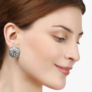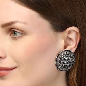 Look Like Silver Circular Shaped Studs,and has artificial stones,Secured with a Post-Back closure.