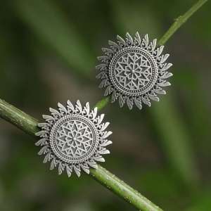 Silver-Plated Circular Earrings and silver-plated,Secured with a post and back,