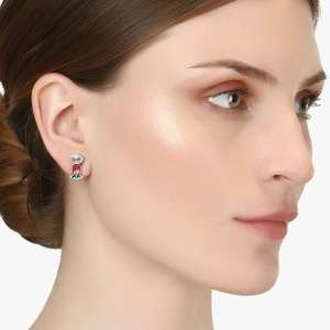 Women Silver-Plated Handcrafted CZ Stone-Studded Earing Silver-plated,and has artificial stones,Secured with a Post-Back closure.