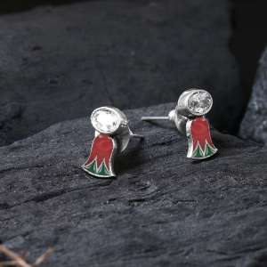 Silver-Plated Green and Red Contemporary Stone -Studded Flower Stud, silver-plated,and has artificial stones,Secured with a post and back closure.