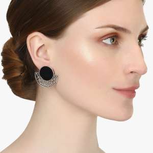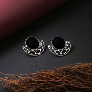 Silver-Plated black Contemporary Stone -Studded Earing, silver-plated,Semi Circle design .and has artificial stones,Secured with a post and back closure.