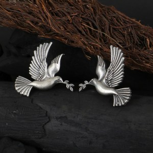 Silver-Plated Bird Shape Handcrafted Studs. and has artificial stones,Secured with a fraction Back closure.