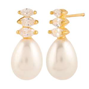 Women 24CT Gold-Plated Golden Pearls Handcrafted Stud,Gold-plated,and has artificial stones,Secured with a Post-Back closure.