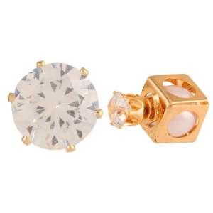 Women Gold-Plated CZ Stone-Studded Handcrafted Stud,and has artificial stones,Secured with a Post-Back