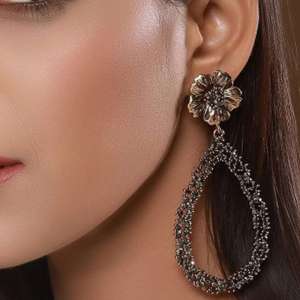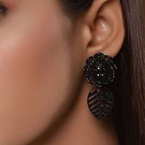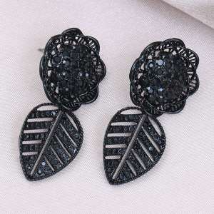 Women Black Beautiful Handcrafted Floral Design With Hanging Leaf fully Stone Studded Drop Earring, It Give you a beautiful elegant look with our outfit.