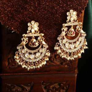 Women Gold Plated Kundan Studded and Drop Earrings. Our Gold Plating is long lasting and non-allergic to skin. It Give you a beautiful elegant look with our outfit.