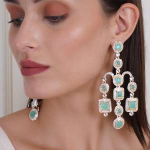 Women Rohdium-Plated Stone-Studded Drop Earrings. Our Rohdium Plating is long lasting and non-allergic to skin. It Give you a beautiful elegant look with our outfit.