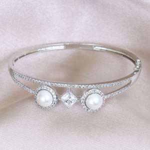 Women Silver Plated AD Stone and Pearl Beaded Jewellery Set