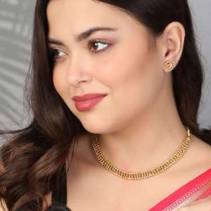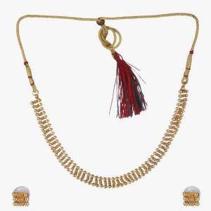 This jewellery set consists of a necklace and a pair of earrings Gold-plated and stranded necklace with Drawstring closure, A pair of matching earrings, secured with a post and back closure, Gold plating is long-lasting and non-allergic to skin