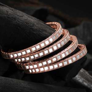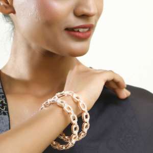 Women Set of 4 24CT Rose gold-plated handcrafted bangles, each has an intricate textured pattern