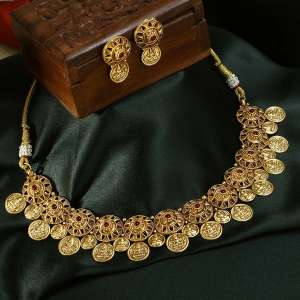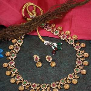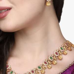 Womem Gold Plated Laxmi Design Pearl & Stones Studded Traditional Chain Set Our Gold Plating is long lasting and non-allergic to skin