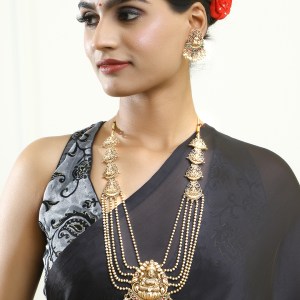 Women Gold Plated Ganpati Temple Pearl Beaded Chain Set Our Gold Plating is long lasting and non-allergic to skin