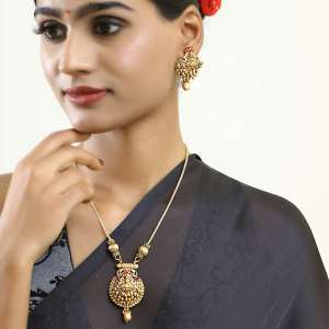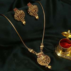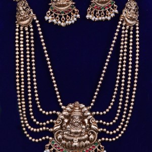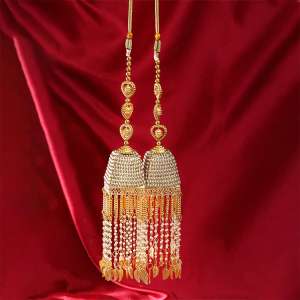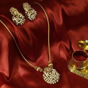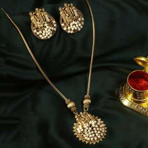 Women Gold Plated God & Goddes Designed Pearl Tessel Traditional Chain Set Our Gold Plating is long lasting and non-allergic to skin