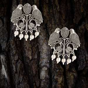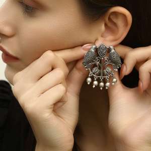 Women Oxidised Silver Plated Peacock Dangler Earrings. Our Silver Plating is Long Lasting and non-allergic to Skin