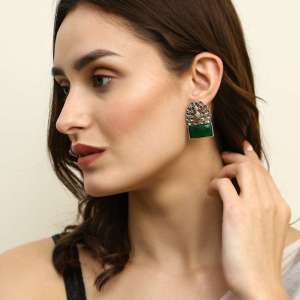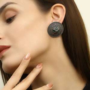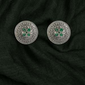 Women Round Shape Oxidised Stud with Emerald Stones. Our Silver Plating is non-allergic to Skin