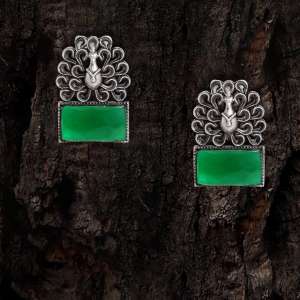 Women Silver Plated Peacock Design Stone Studded Earrings. Our Silver-Plated is long lasting and non-allergic to skin