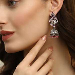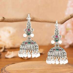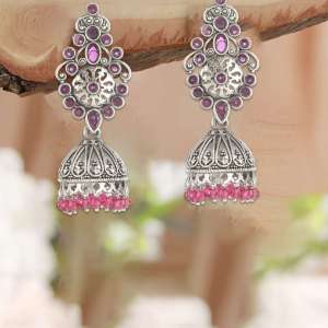 Women Silver Plated Oxidised Jhumki Earrings Our Silver Plating is non-allergic to Skin