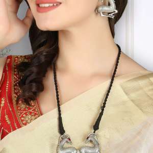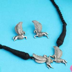 Women Silver Oxidised Pearl Tessels Chain Necklace. Our Silver Plating is long Lasting and non-allergic to skin